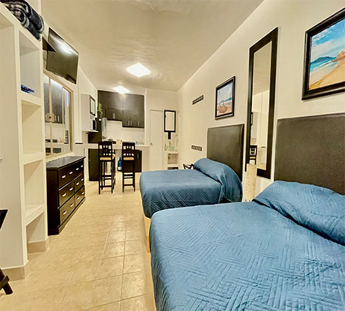 1 habitación 2 camas matrimoniales 1 baño