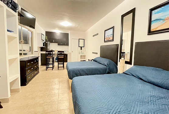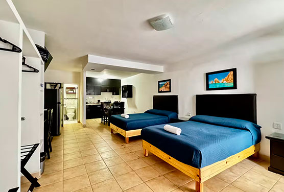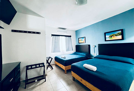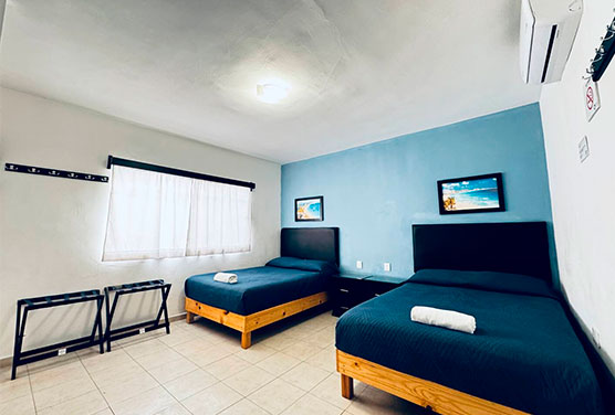 1 habitación 2 camas matrimoniales 1 baño privado